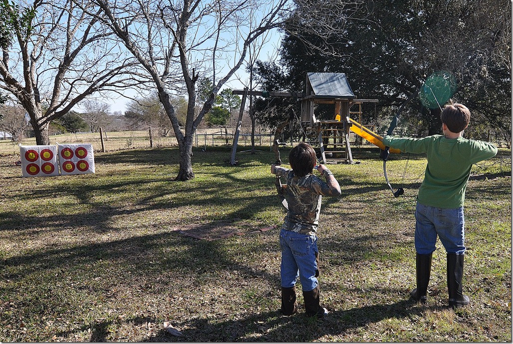 The two terrorists switched from their guns to their arrows during Christmas afternoon.